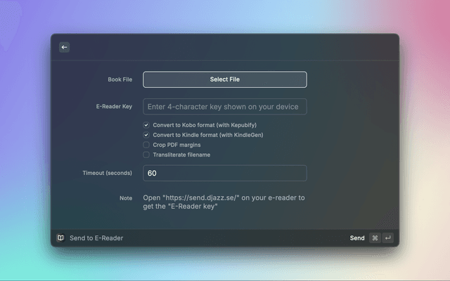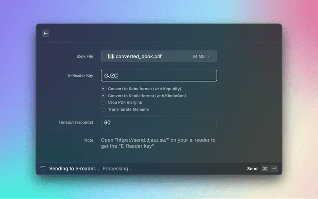 Send ebooks to Kobo/Kindle devices through https://send.djazz.se/