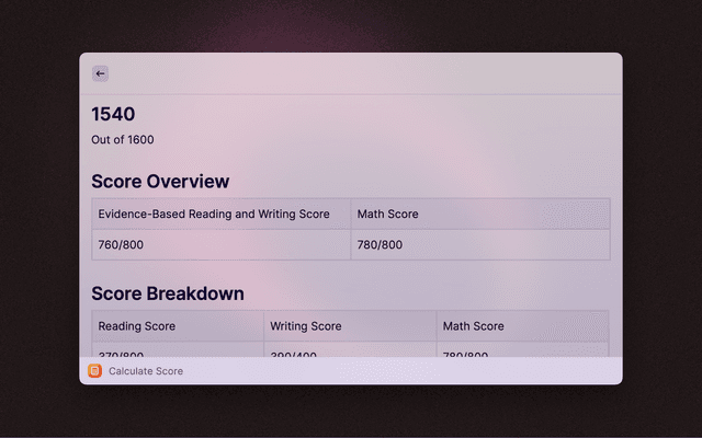 Calculate your SAT score based on problems correct.