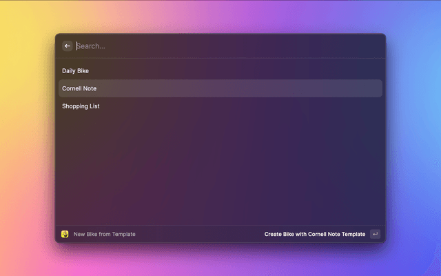 • Create a new Bike document from a pre-configured template layout.