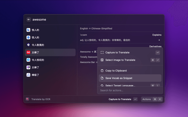 4. Support save the translation results to Snippet