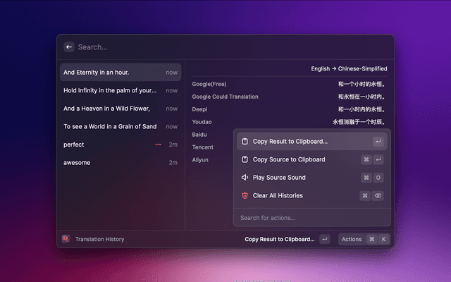 2. Support translate selected text of the frontmost application