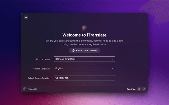 When you first use iTranslate, you can choose Google as the default translation service provider, which does not need to provide additional AppId、AppKey、Secret