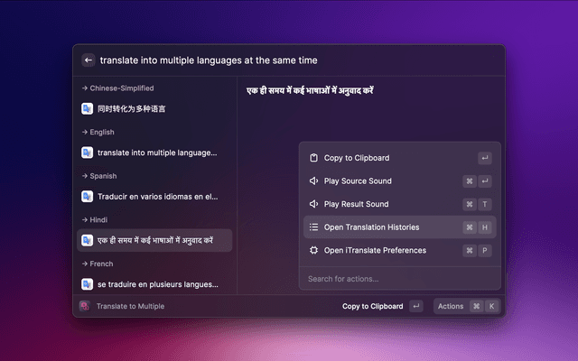 7. Support translate into multiple languages at the same time