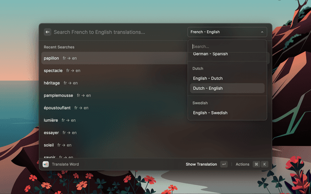 2. Enter your desired word to translate in the Raycast interface.