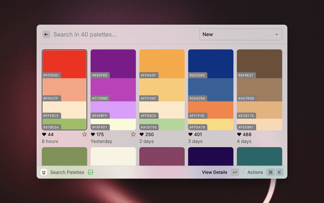 This extension features all the functionalities of the Color Hunt website. Users can browse, search, filter, and copy color palettes to their clipboard.