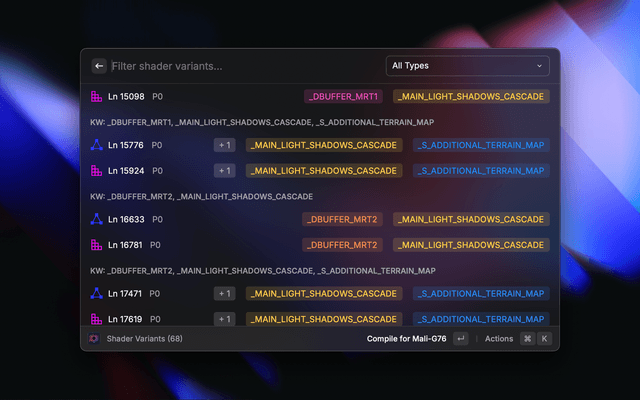 • Select Shader Variant to Compile — Parse Unity shader disassembly files containing multiple variants and choose which one to profile