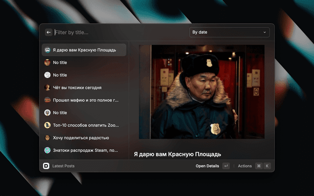 Browse posts, news, topics, and top blogs from DTF.ru with AI-powered features