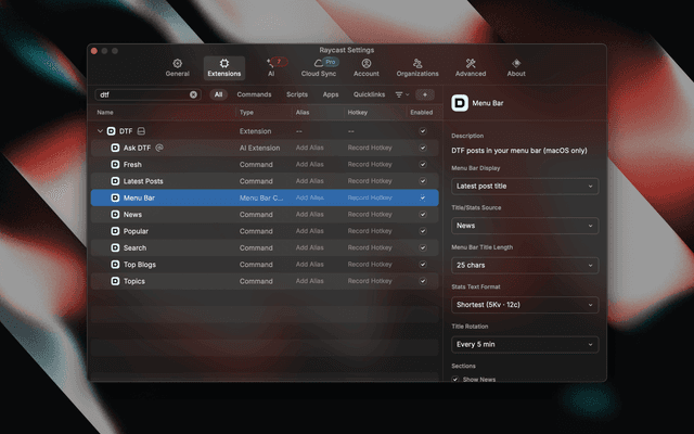 ⚠️ macOS only — Menu Bar is not available on Windows due to Raycast platform limitations.
