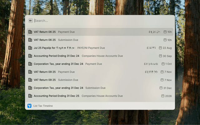 • List Tax Timeline - See upcoming tax obligations