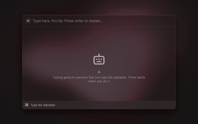 "Type the Alphabet" is a typing game that measures how long it takes you to type the entire alphabet.