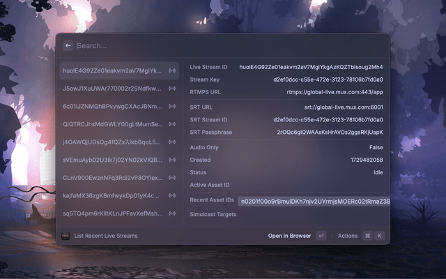 be retrieved from the Mux.com dashboard. Login, navigate to "Video / Assets",