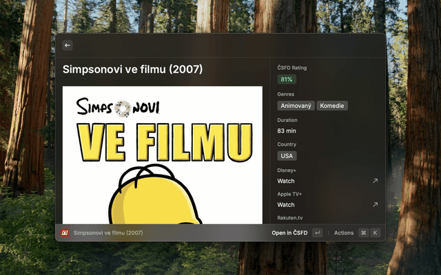 • Color Ratings: See ČSFD's color rating system directly in Raycast.