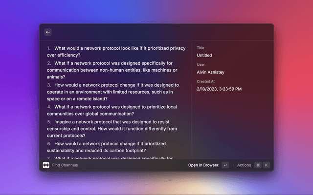 Create new channels directly to your Are.na account using the Create Are.na Channel command.