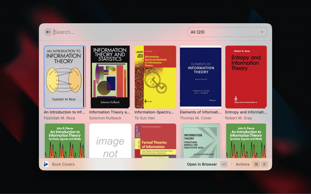 • View Book Cover — full-page cover image with actions to download, copy image, or copy URL
