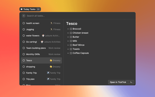 Check and search tasks in TickTick via Raycast