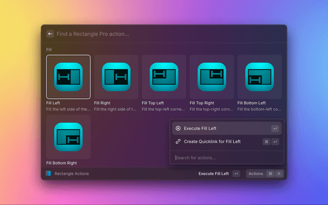 • Searchable, visual overview of all available actions via the Rectangle Actions command