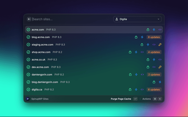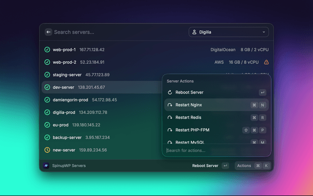 Manage your SpinupWP servers and WordPress sites directly from Raycast.