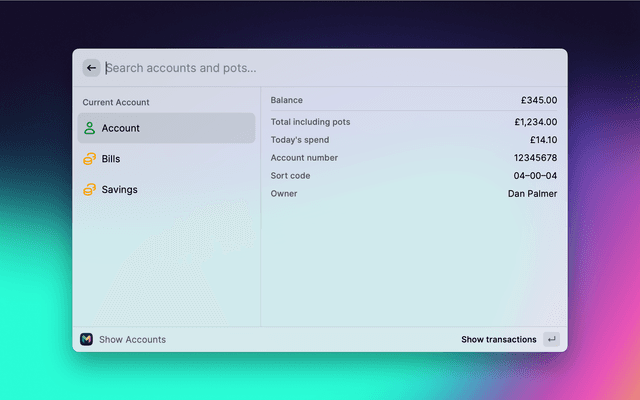 | Description | Access to Monzo account, balance, and transactions in Raycast.. |