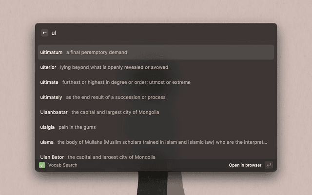 Warning: This extension is not compliant with the Terms of Service of vocabulary.com. Use at your own risk. This is an unofficial plugin.