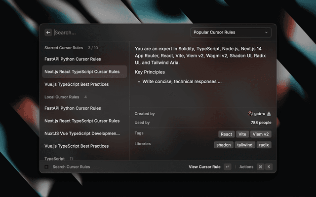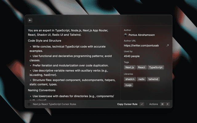 • Starring System: Save up to 10 favorite cursor rules for quick access.