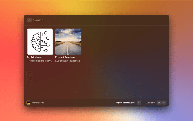 Create, search and copy link, open Miro boards and more.