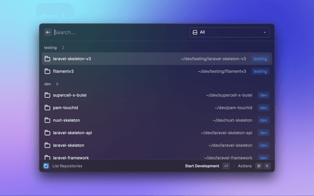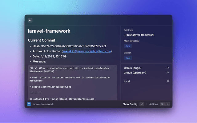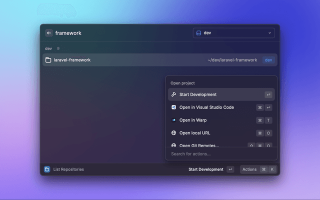 • Quick Actions: Open projects in your preferred editor, terminal, or browser