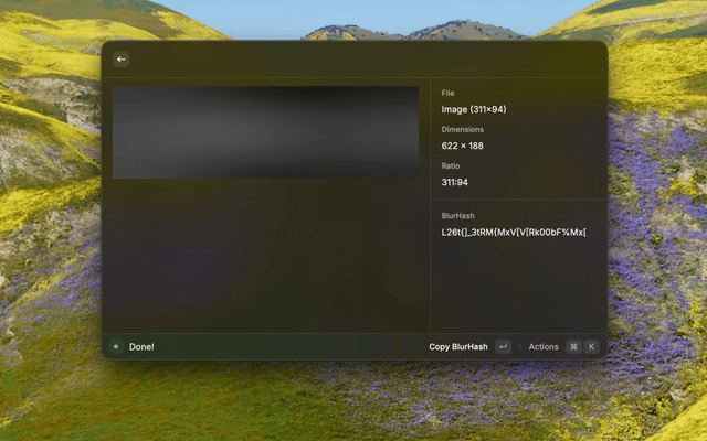 Copy a file in Finder or an image from anywhere, run the command, get the hash. That's it.