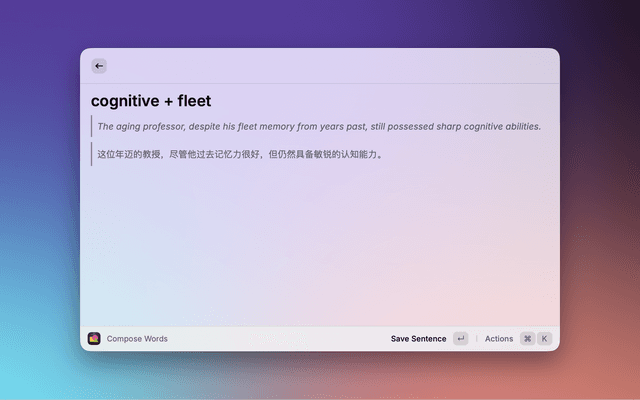 • โœ๏ธ Compose Words: Generate sentences using two random saved words for practice