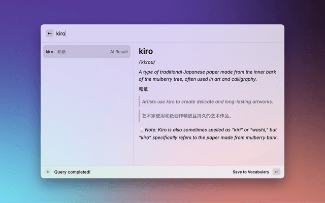 • ๐ŸŒ Multilingual Support: Query words, phrases, and sentences in English, Chinese, or mixed languages