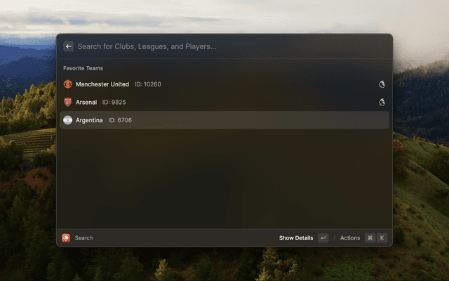 Unofficial Fotmob extension for Raycast that brings football data directly to your command bar.