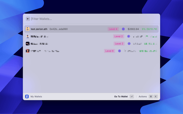 Monitor any account directly in the Raycast! Easy access your favorites, view all NFTs in a collection, and stay updated with real-time market insights with quick links to the Zerion web app!