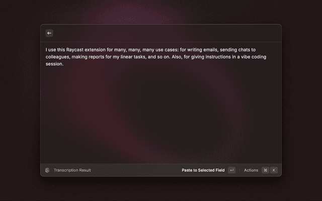 Advanced Speech to Text Extension for Raycast
