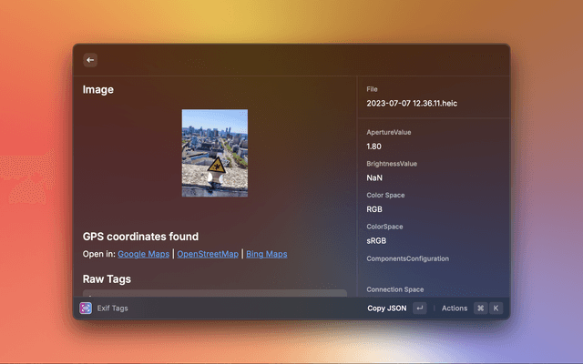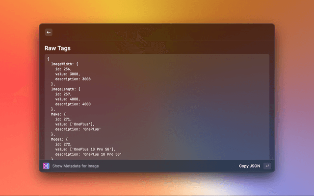 Show metadata (EXIF) for images from clipboard or URL in Raycast.
