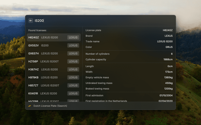 Shows details about Dutch cars by their license plate