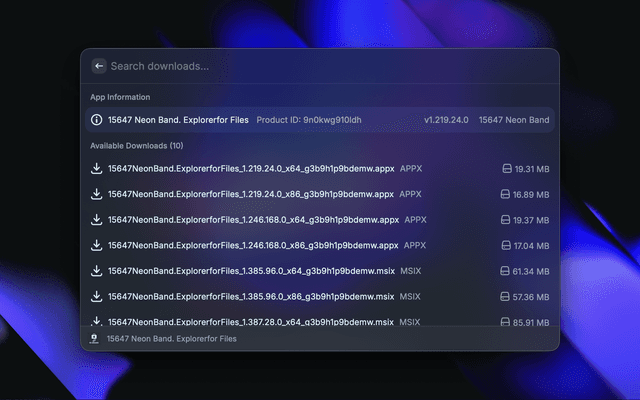• Direct Downloads - Get actual download links for .appx, .msix, and other app packages