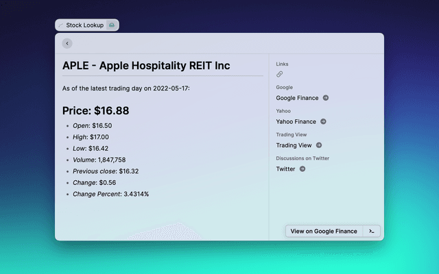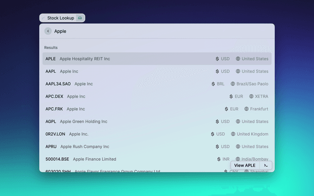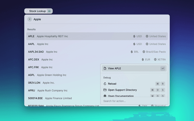 If you want to use your API key, add it raycast preferences (⌘ + ,) Stock Lookup Preferences