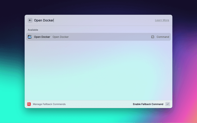 • Open Docker: The primary command to launch or focus the Docker Desktop window.