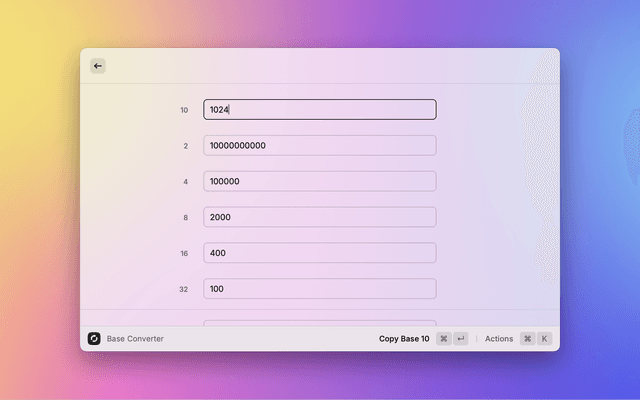 Arbitrary input, direct output. Includes Base converter, Byte converter, Code converter, etc.