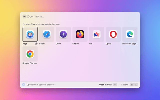 Open link or search text in specific browsers. This extension is for users who switch frequently between browsers.