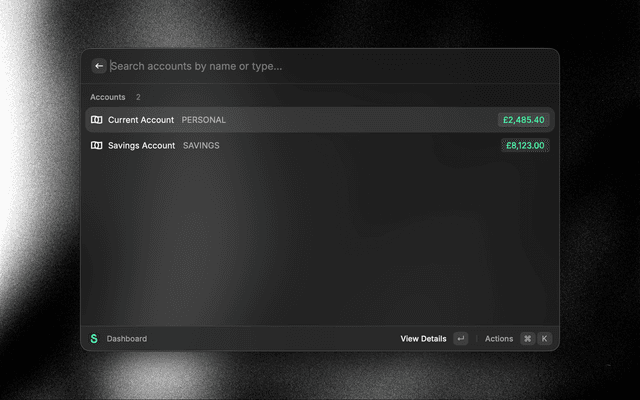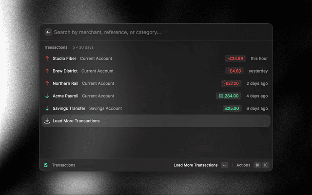 Securely manage your Starling data in Raycast using your own Personal Access Token.