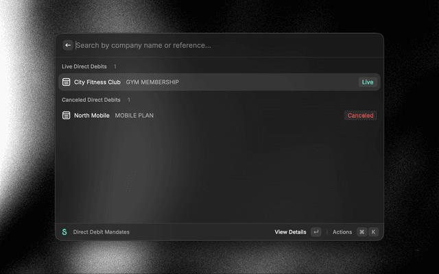 • Direct Debit Mandates: list mandates and cancel selected mandates.