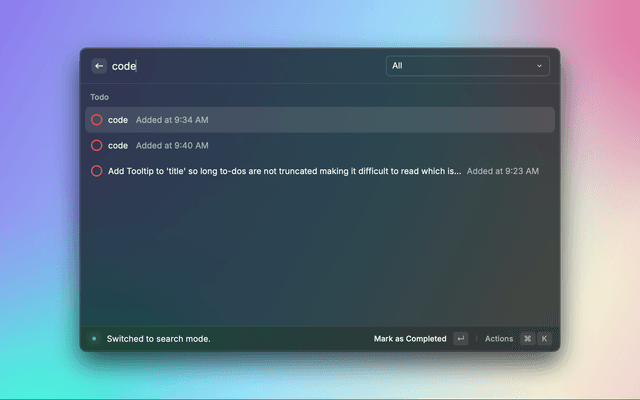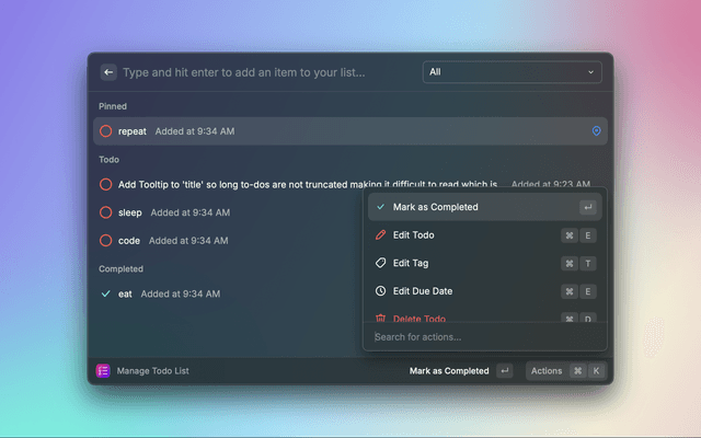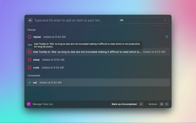 Manage your todo list quickly by adding items and marking items as completed.