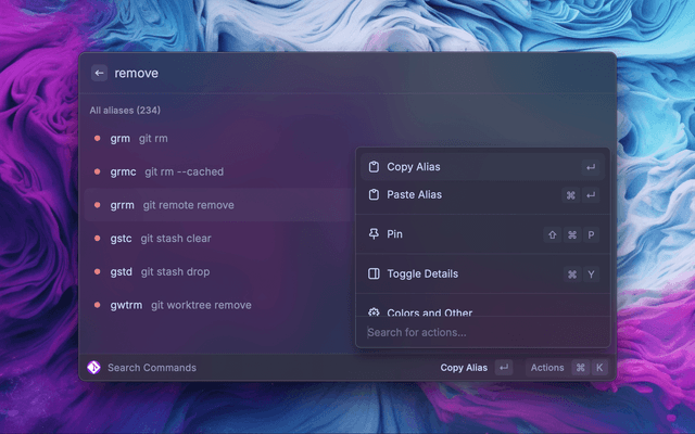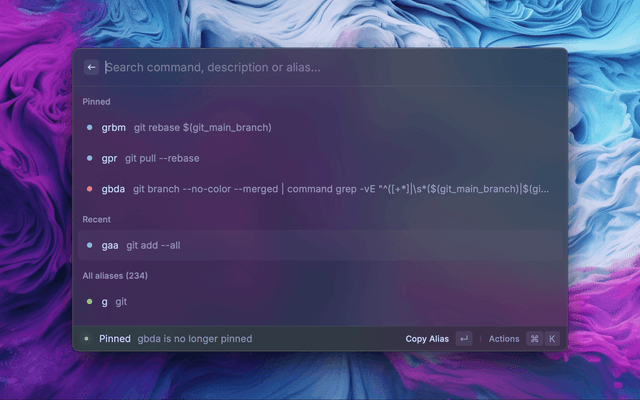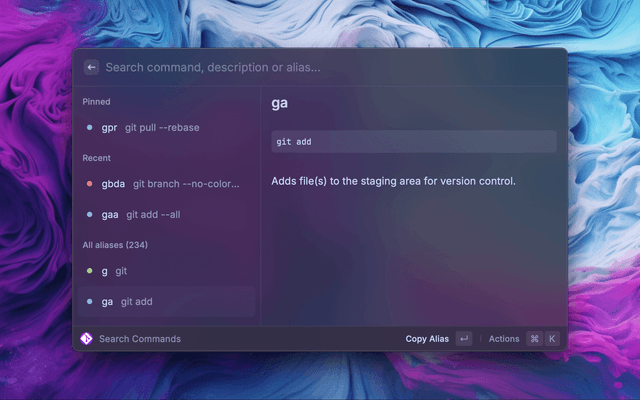 Quickly use and learn Git commands and Oh My Zsh alias.