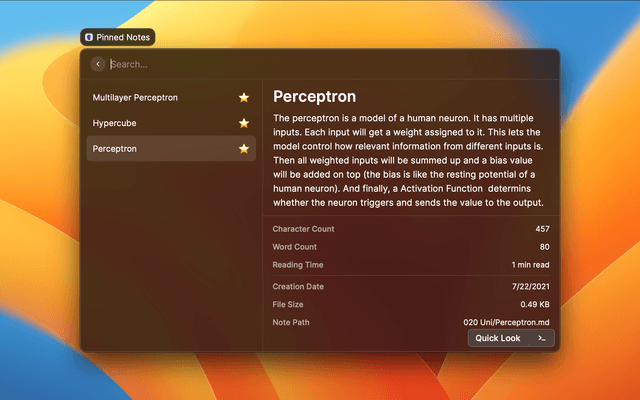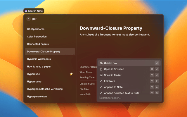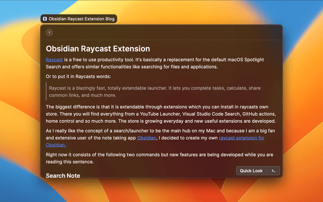 The Quick Look actions will open your note in Raycast itself.