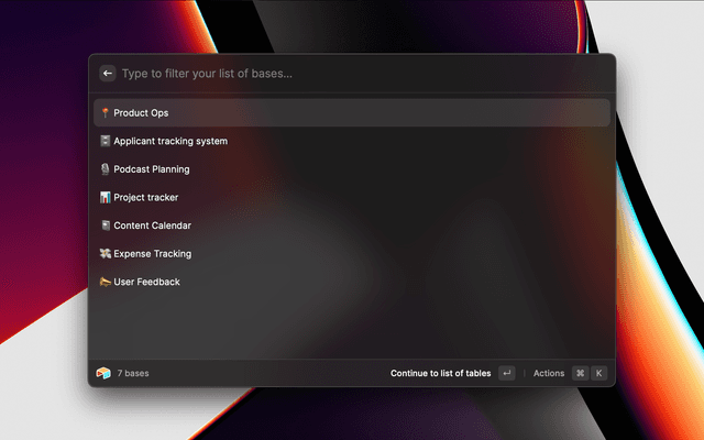 a. Open the List Airtable Bases command in Raycast
