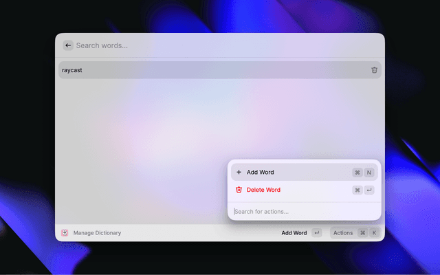 Manage DictionaryView, add, and delete custom dictionary words