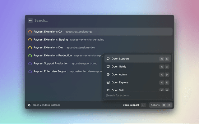 A Raycast extension for comprehensive Zendesk administration. Search, view, and manage all aspects of your Zendesk instances directly from Raycast.