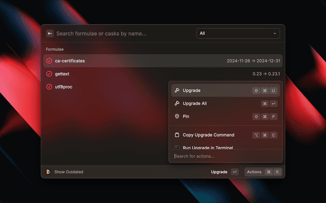 • Internal API: Homebrew 5.0 introduces a more efficient internal JSON API. You can opt-in to this experimental feature in preferences.