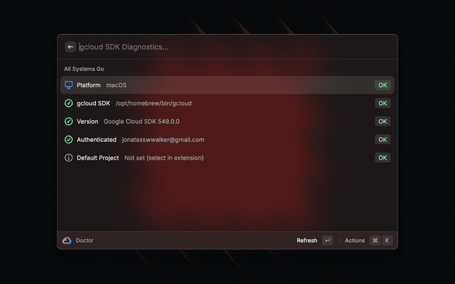 A lightweight Raycast extension for managing Google Cloud resources efficiently. Access and control your GCP projects, services, IAM, storage, and more—all without leaving Raycast.