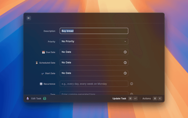 - π§ Full Obsidian Tasks Plugin Support: 100% compatible with the Obsidian Tasks Plugin format, including priorities, dates, and recurrence